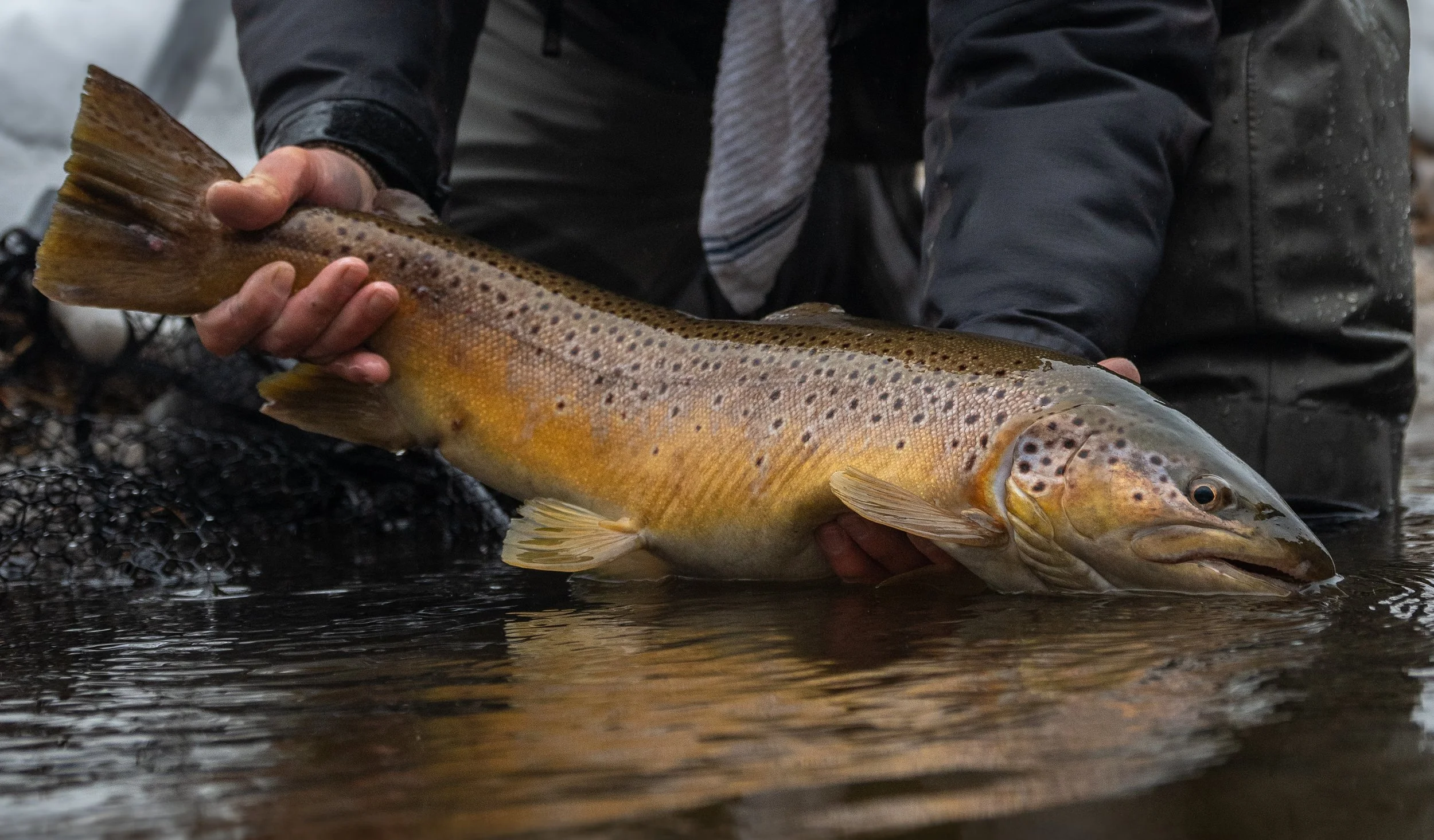 We’ve been primarily running beads and egg patterns under indicator rigs. With water temps hovering in the high 30’s, a low-and-slow presentation is effective. As we roll into January, black stoneflies and hex nymphs will play a bigger role.